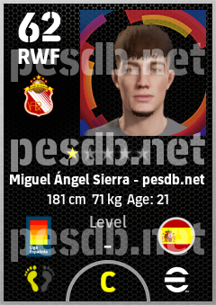 . Miguel Ángel Sierra is a Right Wing Forward footballer from Spain who plays for Sevilla Nervión Br in eFootball 2026.