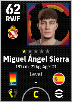 . Miguel Ángel Sierra is a Right Wing Forward footballer from Spain who plays for Sevilla Nervión Br in eFootball 2026.