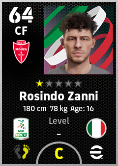 . Rosindo Zanni is a Center Forward footballer from Italy who plays for Monza Rb in eFootball 2026.