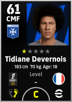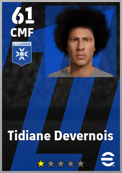 . Tidiane Devernois is a Center Midfielder footballer from France who plays for Aj Auxerre in eFootball 2026.