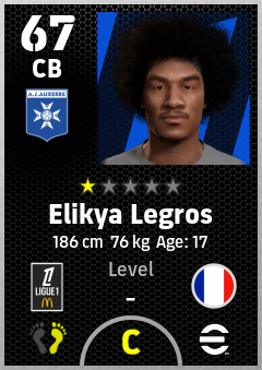 . Elikya Legros is a Center Back footballer from France who plays for Aj Auxerre in eFootball 2026.
