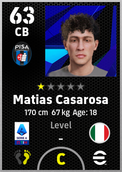 . Matias Casarosa is a Center Back footballer from Italy who plays for Pisa Sporting Club in eFootball 2026.