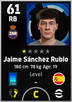 . Jaime Sánchez Rubio is a Right Back footballer from Spain who plays for Zaragoza Ba in eFootball 2026.