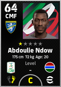 . Abdoulie Ndow is a Center Midfielder footballer from The Gambia who plays for Frosinone Ga in eFootball 2026.