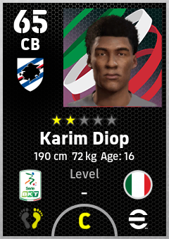 . Karim Diop is a Center Back footballer from Italy who plays for Liguria B in eFootball 2026.