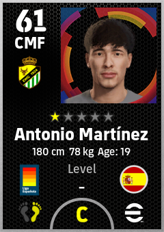 . Antonio Martínez is a Center Midfielder footballer from Spain who plays for Elche Bv in eFootball 2026.