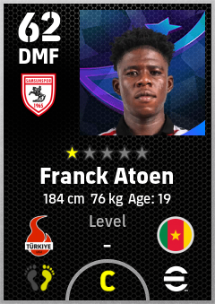 . Franck Atoen is a Defensive Midfielder footballer from Cameroon who plays for Samsunspor in eFootball 2026.