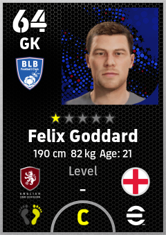 . Felix Goddard is a Goalkeeper footballer from England who plays for Blackburn Bw in eFootball 2026.