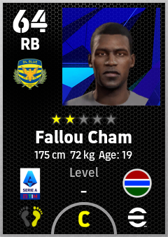 . Fallou Cham is a Right Back footballer from The Gambia who plays for Hellas Verona Fc in eFootball 2026.