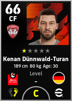 . Kenan Dünnwald-Turan is a Center Forward footballer from Germany who plays for Muangthong United Fc in eFootball 2026.