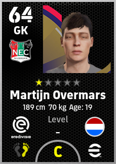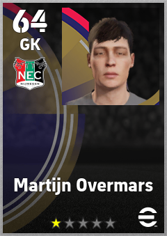. Martijn Overmars is a Goalkeeper footballer from Netherlands who plays for N.e.c. Nijmegen in eFootball 2026.