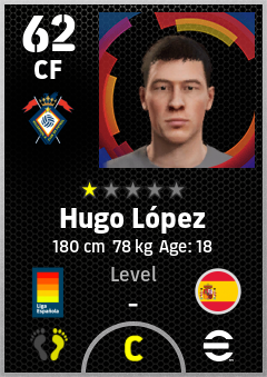 . Hugo López is a Center Forward footballer from Spain who plays for Villarreal A in eFootball 2026.