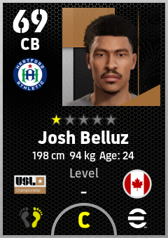 . Josh Belluz is a Center Back footballer from Canada who plays for Hartford Athletic in eFootball 2026.