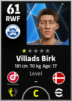 . Villads Birk is a Right Wing Forward footballer from Denmark who plays for Haderslev Hb in eFootball 2026.