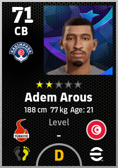 . Adem Arous is a Center Back footballer from Tunisia who plays for Kasımpaşa Sk in eFootball 2026.