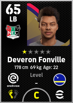 . Deveron Fonville is a Left Back footballer from Curaçao who plays for N.e.c. Nijmegen in eFootball 2026.