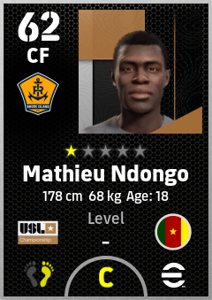 . Mathieu Ndongo is a Center Forward footballer from Cameroon who plays for Rhode Island Fc in eFootball 2026.