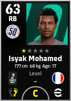 . Isyak Mohamed is a Right Back footballer from France who plays for Montpellier Hérault Sc in eFootball 2026.