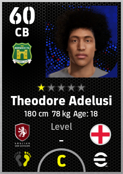 . Theodore Adelusi is a Center Back footballer from England who plays for Norwich Yg in eFootball 2026.