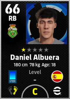 . Daniel Albuera is a Right Back footballer from Spain who plays for Córdoba Vb in eFootball 2026.
