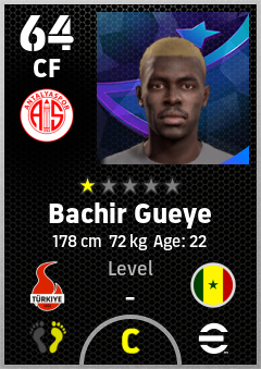 . Bachir Gueye is a Center Forward footballer from Senegal who plays for Antalyaspor in eFootball 2026.