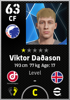 . Viktor Daðason is a Center Forward footballer from Iceland who plays for København Hb in eFootball 2026.