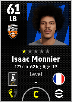 . Isaac Monnier is a Left Back footballer from France who plays for Fc Lorient in eFootball 2026.