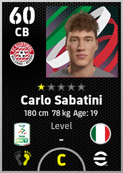 . Carlo Sabatini is a Center Back footballer from Italy who plays for Südtirol Br in eFootball 2026.