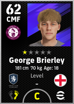 . George Brierley is a Center Midfielder footballer from England who plays for Burnley Rb in eFootball 2026.