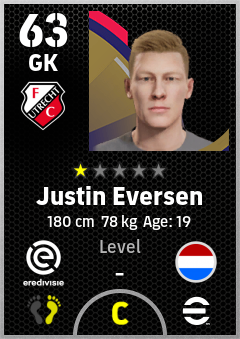 . Justin Eversen is a Goalkeeper footballer from Netherlands who plays for Fc Utrecht in eFootball 2026.