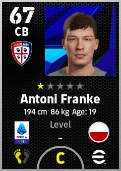 . Antoni Franke is a Center Back footballer from Poland who plays for Cagliari Rb in eFootball 2026.