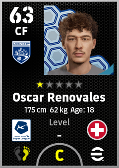 . Oscar Renovales is a Center Forward footballer from Switzerland who plays for Lausanne Bw in eFootball 2026.