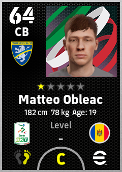 . Matteo Obleac is a Center Back footballer from Moldova who plays for Frosinone Ga in eFootball 2026.