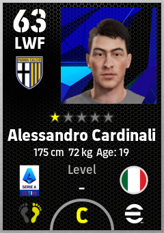 . Alessandro Cardinali is a Left Wing Forward footballer from Italy who plays for Parma Calcio 1913 in eFootball 2026.