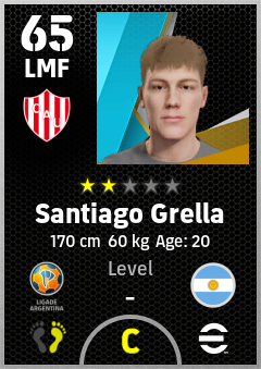 . Santiago Grella is a Left Midfielder footballer from Argentina who plays for Santa Fe Rb in eFootball 2026.