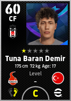 . Tuna Baran Demir is a Center Forward footballer from Türkiye who plays for Beşiktaş Jk in eFootball 2026.