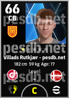 . Villads Rutkjær is a Center Back footballer from Denmark who plays for Nordsjælland Rg in eFootball 2026.