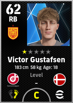 . Victor Gustafsen is a Right Back footballer from Denmark who plays for Nordsjælland Rg in eFootball 2026.