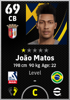 . João Matos is a Center Back footballer from Brazil who plays for Sporting Braga in eFootball 2026.