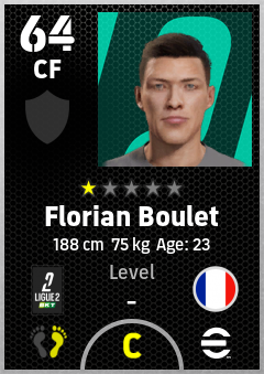 . Florian Boulet is a Center Forward footballer from France who plays for Us Boulogne Co in eFootball 2026.