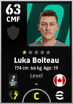 . Luka Boiteau is a Center Midfielder footballer from Canada who plays for Us Boulogne Co in eFootball 2026.