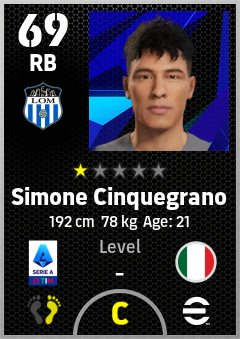 . Simone Cinquegrano is a Right Back footballer from Italy who plays for Internazionale Milano in eFootball 2026.