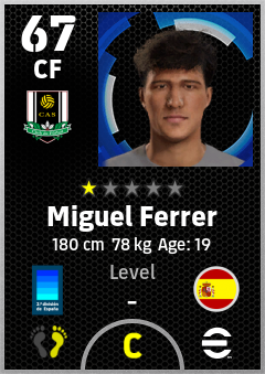 . Miguel Ferrer is a Center Forward footballer from Spain who plays for Castellón Nb in eFootball 2026.