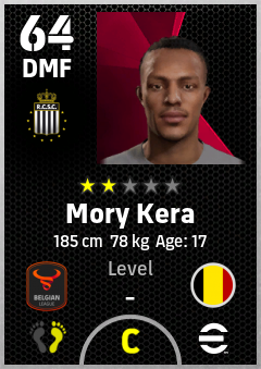 . Mory Kera is a Defensive Midfielder footballer from Belgium who plays for Charleroi Zw in eFootball 2026.