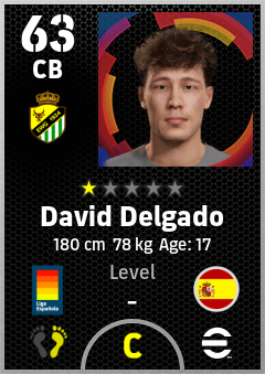 . David Delgado is a Center Back footballer from Spain who plays for Elche Bv in eFootball 2026.