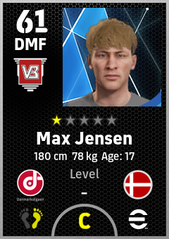. Max Jensen is a Defensive Midfielder footballer from Denmark who plays for Vejle Rh in eFootball 2026.