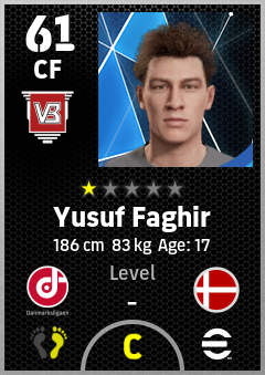 . Yusuf Faghir is a Center Forward footballer from Denmark who plays for Vejle Rh in eFootball 2026.