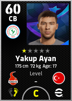 . Yakup Ayan is a Center Back footballer from Türkiye who plays for Çaykur Rizespor in eFootball 2026.