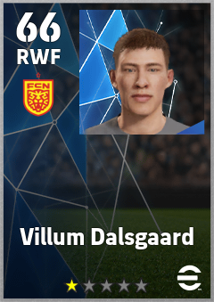 . Villum Dalsgaard is a Right Wing Forward footballer from Denmark who plays for Nordsjælland Rg in eFootball 2026.