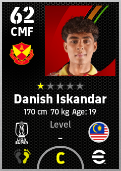 . Danish Iskandar is a Center Midfielder footballer from Malaysia who plays for Selangor Fc in eFootball 2026.